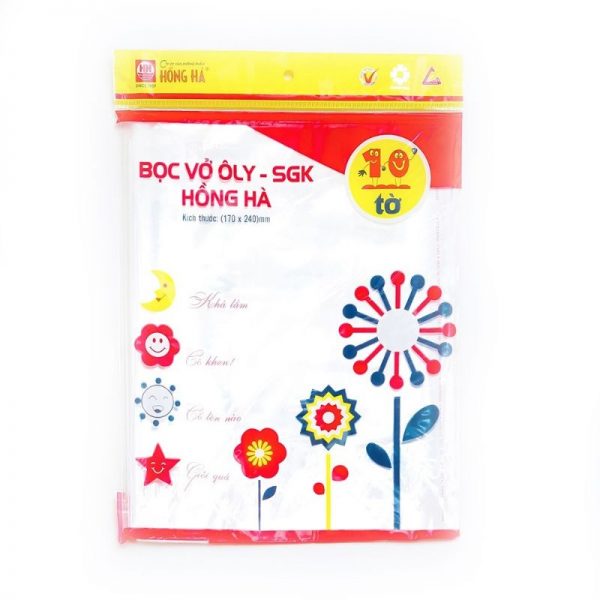 - Sản phẩm đóng tập 10 cái.Bọc vở nilon Hồng Hà (10 cái/tập) là sản phẩm của Hồng Hà