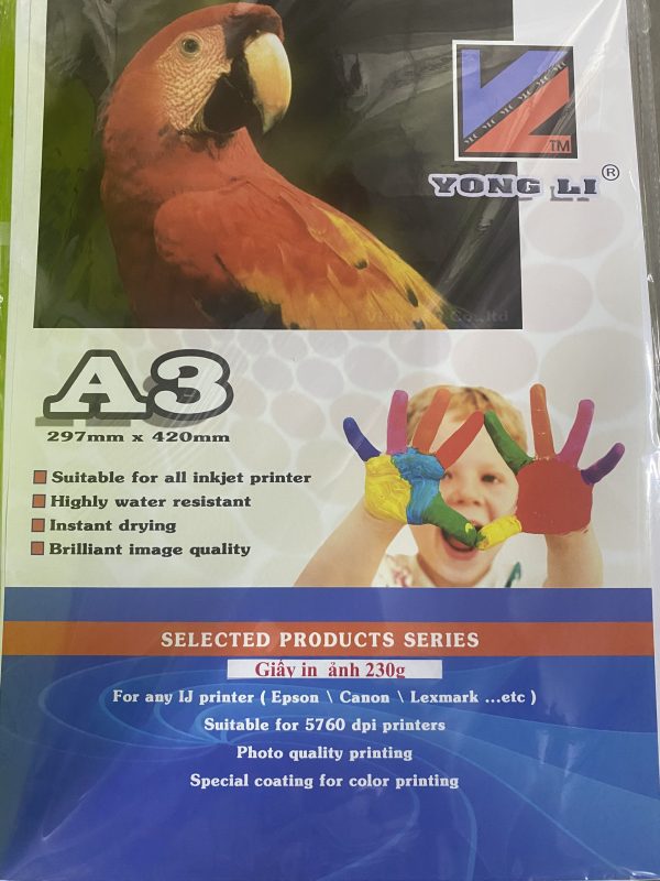 - Đặc điểm: – Giấy in ảnh Mạnh Hưng định lượng 230gsm được sử dụng bằng nguyên liệu giấy cao cấp để sản xuất, đặc biệt là lớp bột phủ và giấy bìa tạo nên chất lượng ảnh in cao, không bay màu, màu sắc rõ nét không nhòe mực, khô nhanh, chống nước tốt, giữ màu bền.