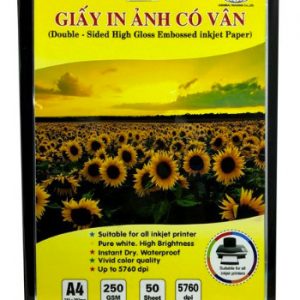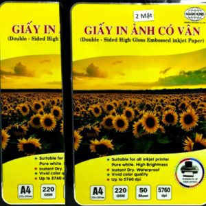 Xem chi tiếtĐộ phân giải: 5760 dpi Khổ giấy: A4 (210 x 297mm) Đặc tính bề mặt: 2 mặt bóng Định lượng : 360gsm – Số lượng : 50 tờ/ xấp Xuất xứ : Mạnh Hưng, Việt Nam Sản xuất bằng nguyên liệu giấy cao cấp, đặc biệt là lớp bột phủ và giấy bìa tạo nên [...]